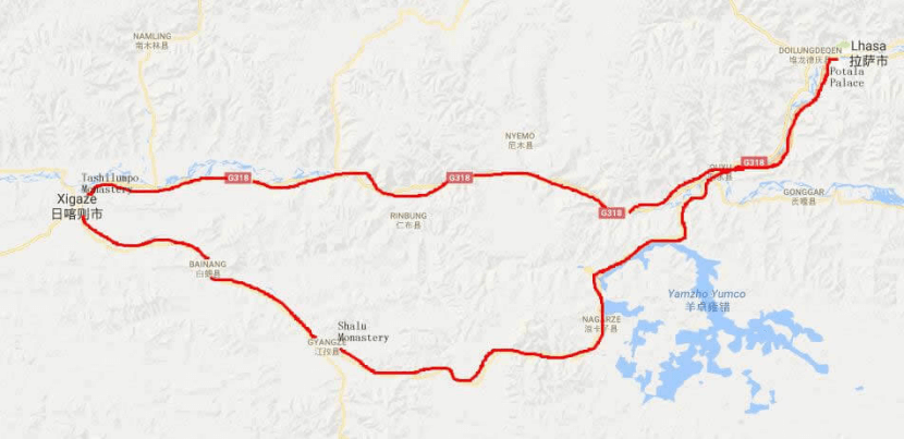 Lhasa -- Yamdrok-tso -- Gyantse
